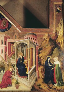 *International Style = A style of 14th and 15 century painting begunby Simone Martini, who adapted the French Gothic manner toSienese art fused with the influences from the North. This styleappealed to the aristocracy because of its brilliant color, lavishcostume, intricate ornament, and themes involving splendidprocessions of knights and ladies.